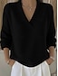 Koszula damska z bawełny i lnu Jednokolorowa Elegancka Casual Długi rękaw Dekolt w kształcie V Regularne topy Codziennie Wakacje Kieszeń Czarny Biały Różowy Niebieski Lato Wiosna