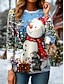 Święta Damskie Podkoszulek Graficzny Bałwan Moda Codzienny Długi rękaw Półgolf Okrągły dekolt Zwykłe topy Codzienny Weekend Nadruk Rumiany róż Złoty Zielony Lato Wiosna Jesień Zima