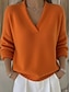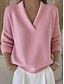 Damskie Sweter Codzienny Miękkie Czyste kolory Prążkowany W serek Dzianiny Długi rękaw Zwykłe topy Robić na drutach Na zewnątrz Codzienny Weekend Czarny Rumiany róż Jesień Zima