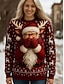 Świąteczny damski sweter Casual Poliester Uliczne codzienne Crew Neck Print Długi rękaw Niebieski Dżins Bordowy Zielony Jesień Zima