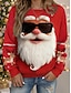 Świąteczny Damski Sweter Pullover Z Rysunkiem Świętego Mikołaja Płatka Śniegu Casual Długi Rękaw Okrągły Dekolt Regularne Bluzki Uliczne Casual Świąteczny Print Niebieski Ciemnoniebieski
