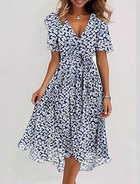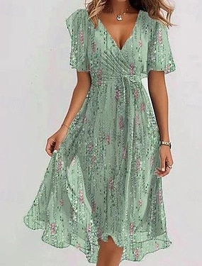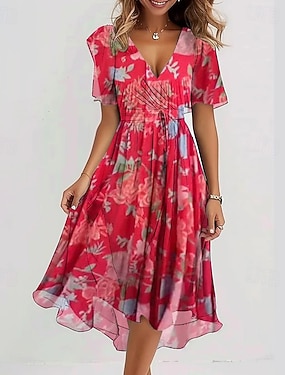 Damskie Sukienka midi Sukienka koktajlowa Sukienki szyfonowe Sukienka w kwiatki Sukienka z nadrukiem Moda Nowoczesny Na zewnątrz Urlop Herbaciane przyjęcie Regularny Kwiat Krótki rękaw W serek