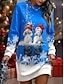 Świąteczny Damski Sweter Pullover Z Rysunkiem Świętego Mikołaja Płatka Śniegu Casual Długi Rękaw Okrągły Dekolt Regularne Bluzki Uliczne Casual Świąteczny Print Niebieski Ciemnoniebieski