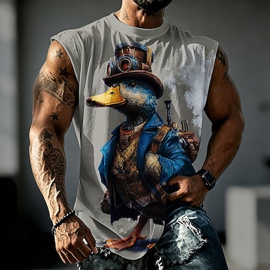 Męskie Zwierzę Kaczka Podkoszulek Krótki rękaw Podkoszulek Druk 3D Półgolf Koszula Zabawny Codzienny Ulica Żółty Khaki Szary Lato Wiosna Odzież S M L XL 2XL 3XL