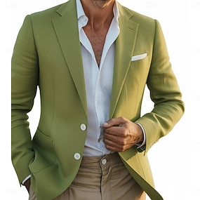 Męskie Lniana marynarka Sportowy płaszcz Kołnierz z wycięciem Lekki Codzienny Solidne kolory Blazer Szałwiowy Luźny / a Jednorzędowy Dwa guziki