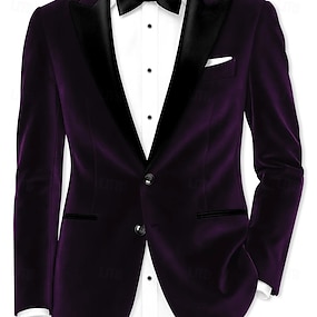 Męskie Marynarka Smokin Formalny Ślub Święta Kieszonki Święta Impreza Jesień i zima Na każdy sezon Aksamit Solidne kolory Podstawowy Pojedynczy biust na jeden guzik Blezer Czarny