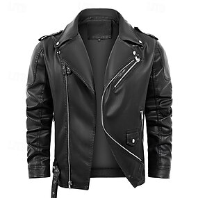 Męskie Skórzana kurtka Kurtka motocyklowa Urlop Codzienny Odporność na wiatr Zatrzymujący ciepło Kieszeń Jesień Zima Równina Moda Klasyczny Kołnierz stawiany Regularny Czarny Kurtki