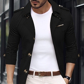 Męskie Kurtka użytkowa Kurtka przejściowa Wyjściowe Kieszeń Na każdy sezon Równina Klasyczny Klapa Regularny Czarny Khaki Zieleń wojskowa Kurtki