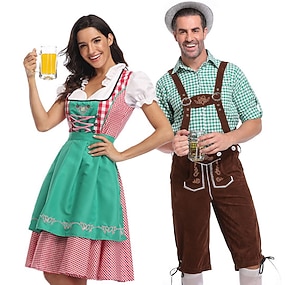 pary oktoberfest piwo kostium dirndl sukienka trachtenkleider pokojówka oktoberfest pary sukienki niemiecki monachium wiesn męskie damskie tradycyjny styl tkanina halloween karnawał