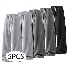 5 sztuk męskich spodni dresowych z prostymi nogawkami, polarowych, spodni codziennych, ze ściągaczem w pasie, wielopak, gładkich, wygodnych, pełnej długości, na zewnątrz, na co dzień, na wakacje,