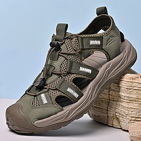 męskie sandały outdoorowe w kolorze khaki, z zabudowanymi palcami, regulowanym systemem dopasowania, lekkie i wygodne, idealne do wędrówek pieszych, biwakowania i codziennego noszenia