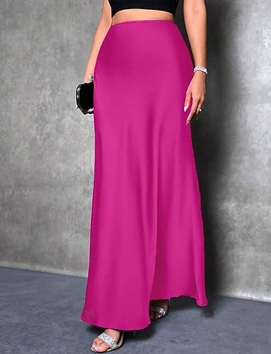 Damskie Spódnice satynowe Elegancja Moda Maxi Wysoka talia Spódnice Równina Średnio elastyczny Impreza Ulica Niebieski Wino Ciemnozielony Fioletowy Wiosna Satyna Poliester