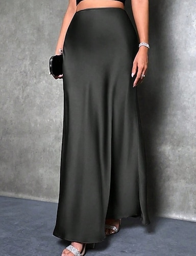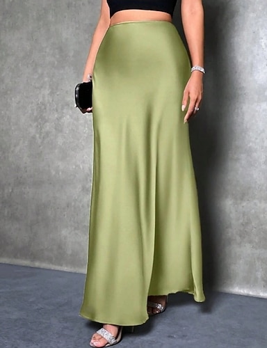 Damskie Spódnice satynowe Elegancja Moda Maxi Wysoka talia Spódnice Solidne kolory Codzienny Ulica Czarny Biały Khaki Lato Satyna