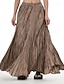 Damskie Spódnice satynowe Moda Długie Maxi Wysoka talia Spódnice Solidne kolory Z marszczeniami Pofałdowany Połysk Średnio elastyczny Codzienny Święto Srebrny Błękit pawi Granatowy Czarny Wiosna