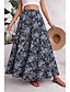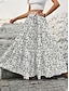 Damskie Spódnica wakacyjna Moda Codzienny Maxi Wysoka talia Spódnice Kwiatowy Z marszczeniami Nadruk Średnio elastyczny Codzienny Ulica Niebieski Czarny Biały Lato Poliester