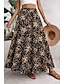 Damskie Spódnica wakacyjna Bohema Moda Codzienny Maxi Wysoka talia Spódnice Kwiaty Nadruk Średnio elastyczny Codzienny Ulica Szałwiowy Czarny Żółty Fioletowy Wiosna Poliester