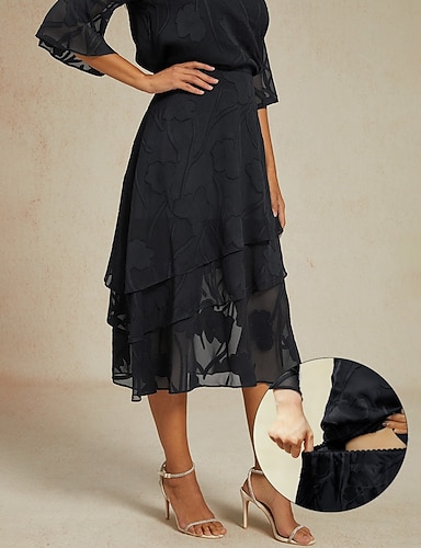 Damskie Elegancja Codzienny Midi Średni Talia Spódnice Kwiatowy Koronka Falbana Nieregularny brzeg Średnio elastyczny Randka Codzienne Czarny Lato Szyfon