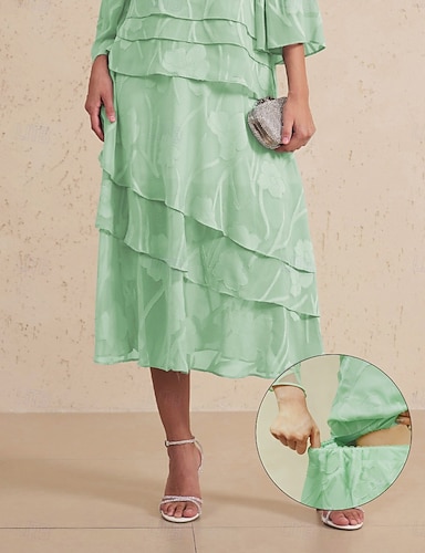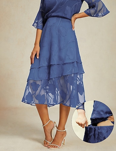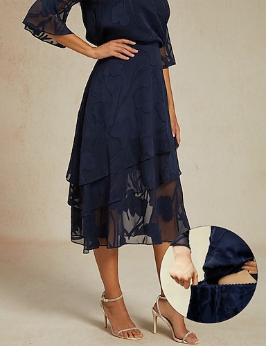 Damskie Elegancja Midi Średni Talia Spódnice Kwiaty Koronka Falbana Wielowarstwowy Średnio elastyczny Randka Codzienne Szałwiowy Wiosna, jesień, zima, lato Poliester