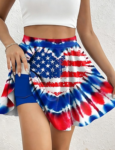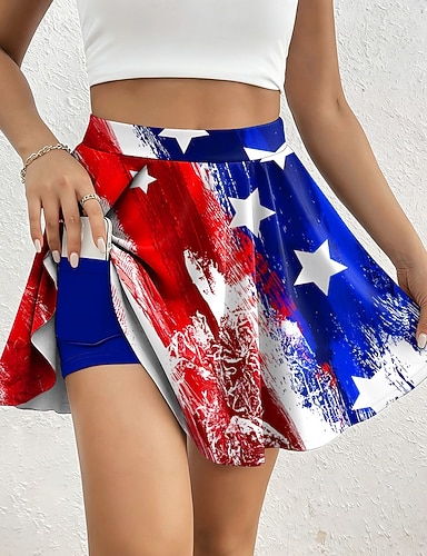 Spódnica damska na wakacje z okazji 250. rocznicy niepodległości, modna, swobodna, długa, z wysokim stanem, z nadrukiem kieszeni, mikroelastyczna, na co dzień, na wakacje, niebiesko-czerwona,