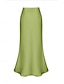 Damskie Spódnice satynowe Elegancja Moda Codzienny Midi Wysoka talia Spódnice Równina Nieelastyczny Codzienny Ulica Niebieski Wino Czarny Biały Wiosna Satyna Poliester