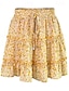 Damskie Moda Codzienny Mini Średni stan Spódnice Kwiatowy Z marszczeniami Ściągana na sznurek Średnio elastyczny Codzienny Ulica Niebieski Granatowy Żółty Czerwony Lato Poliester