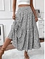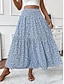 Eleganckie spódnice damskie maxi z wysokim stanem, z kwiatowym, geometrycznym nadrukiem, z marszczeniami, zwiewne, nieelastyczne, na co dzień, niebieskie, czarne, czerwone, błękitne, letnie