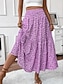 Damskie Bohema Moda Codzienny Maxi Wysoka talia Spódnice Kwiaty Nadruk Elastyczny Codzienny Ulica Czerwony Niebieski Fioletowy Zielony Wiosna Poliester
