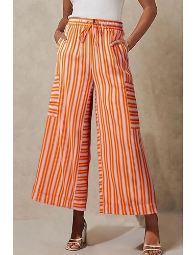 Damskie Spodnie Codzienne Pełna długość Prążki Ściągana na sznurek Boczne kieszenie Z wycięciem Oddychalność Wygodny Nieelastyczny Wyjściowe Weekend Niebieski Czarny Różowy Fioletowy Lato Wiosna