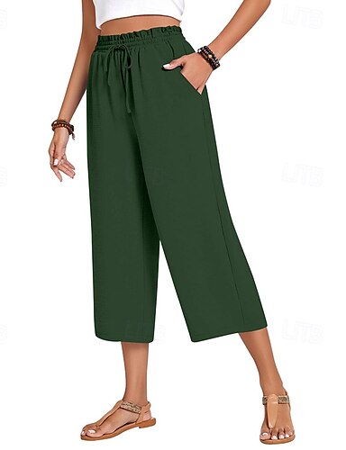 Damskie Spodnie capri Sztuczna bawełna len Spodnie szerokie nogawki Typu Chino Urlop Moda miejska Codzienny Pełna długość Średia talia Równina Kieszeń Elastyczny pas Oddychający Średnio elastyczny