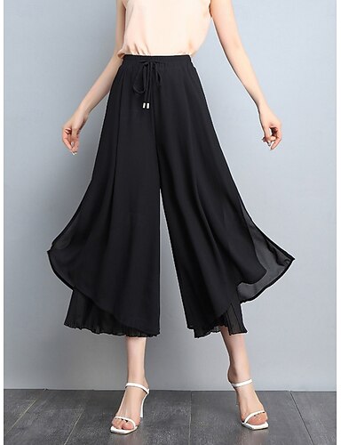 Damskie Spodnie szerokie nogawki Spodnie Spodnie codzienne Urlop Moda Moda miejska Długość do łydki Wysoka talia Równina Elastyczny pas Wygodny Oddychający Średnio elastyczny Codzienny Urlop Ulica