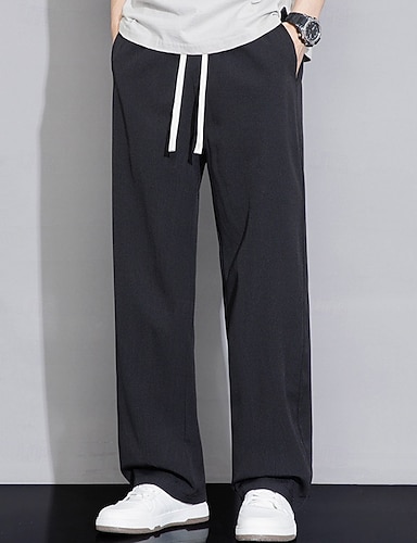 Męskie Spodnie Spodnie codzienne Luźne spodnie Teksturowane spodnie Żakard Ściągana na sznurek Prosta noga Równina Komfort Pełna długość Codzienny Na zewnątrz Urlop Urlop Moda Niebieski Czarny