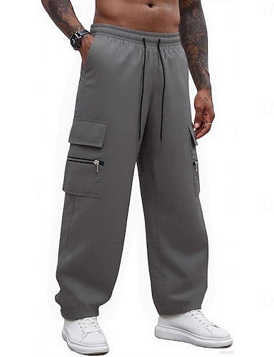 Męskie Spodnie cargo Szorty Spodnie codzienne Ściągana na sznurek Multi Pocket Równina Komfort Wygodny Pełna długość Codzienny Na zewnątrz Streetwear Urlop Prosty Czarny Szary Nieelastyczny