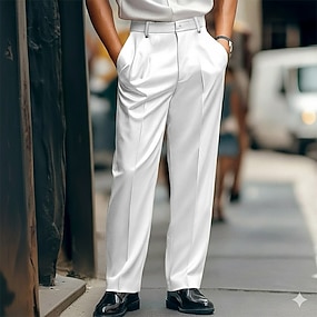 Męskie Garnitury Spodnie Typu Chino Spodnie codzienne Prosta noga Równina Komfort Oddychający Pełna długość Ślub Moda Codzienny Biały Khaki Średnio elastyczny