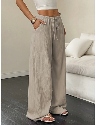 Damskie Spodnie szerokie nogawki Typu Chino Urlop Moda miejska Codzienny Pełna długość Średia talia Równina Elastyczna konstrukcja ze sznurkiem Wygodny Elastyczny Codzienny Na zewnątrz Urlop