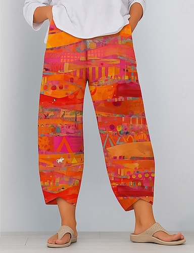 Damskie Spodnie Spodnie 3/4 Urlop Zabytkowe Styl etniczny Pełna długość Wysoka talia Graficzny Abstrakcja Geometryczny Elastyczny pas Wygodne Oddychalność Miękka Nieelastyczny Codzienny Na zewnątrz