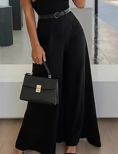 Damskie Spodnie szerokie nogawki Spodnie Spodnie codzienne Urlop Moda Moda miejska Pełna długość Wysoka talia Równina Elastyczny pas Wygodny Oddychający Nieelastyczny Codzienny Urlop Ulica Czarny