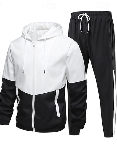 Męskie Dres 2-częściowy Bluza z kapturem Lounge Komplety dresowe z kieszenią Kolorowy blok Zestawy odzież Wiosna Czarny Zieleń wojskowa Siłownia Trening Bieganie Wysoka talia Lekki Moda Długi rękaw