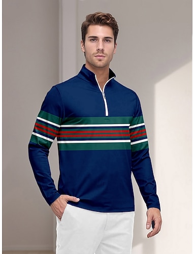 Męskie Koszulka polo Niebieski Długi rękaw Top Strój golfowy Ubrania Stroje Noś odzież
