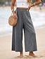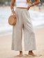 Damskie Spodnie capri Sztuczna bawełna len Spodnie Letnie szorty Urlop Moda Podstawowy Pełna długość Wysoka talia Jednokolorowe Równina Kieszeń Spodnie szerokie nogawki Elastyczny pas Komfort Miękka