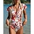 Damskie Docieplacze Kostium kąpielowy Tropikalny Suwak przedni Ochrona przeciwsłoneczna UV UPF50+ Szybkie wysychanie Długi rękaw Kąpielówki Strój kąpielowy Surfing Plaża Sporty wodne Lato