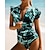 Damskie Dwuczęściowy strój kąpielowy Tropikalny Drukowane 2-częściowa Suwak przedni Noga do połowy uda Spandeks Ochrona przeciwsłoneczna UV Szybkie wysychanie Lekki Krótki rękaw Kąpielówki Kostium