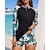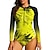 Damskie Strój kąpielowy Rashguard Niejednolita całość Drukowane 2-częściowa Suwak przedni Spandeks Ochrona przeciwsłoneczna UV UPF50+ Szybkie wysychanie Długi rękaw Kąpielówki Kostium kąpielowy
