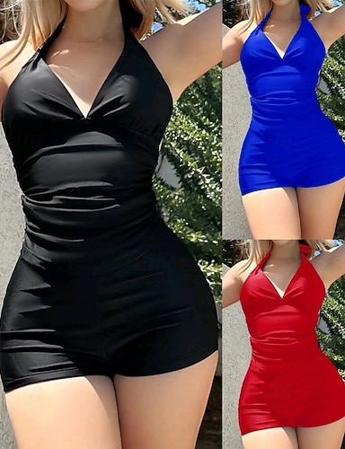 Damskie Marszczony kostium kąpielowy Strój kąpielowy Stroje kąpielowe Solidne kolory Ochrona UV Elastyczny Bez rękawów Kąpielówki Kostium kąpielowy Surfing Nurkowanie Pływacki Lato