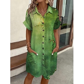 Damskie Sukienka mini Sukienka koszulowa Codzienne sukienki Sukienka z nadrukiem Moda Nowoczesny Codzienny Plaża Weekend Regularny Kwiaty Krótki rękaw Kołnierzyk koszuli Zielony Lato Wiosna Jesień