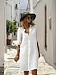 Damskie Sukienka do kolan Sztuczna bawełna len Sukienka koszulowa Moda Nowoczesny Codzienny Na zewnątrz Urlop Luźna Równina Bez rękawów Kołnierzyk koszuli Czarny Biały Szary Jasnoniebieski Lato Wiosna