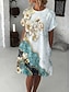 Damskie Sukienka do kolan Codzienne sukienki Sukienka w kwiatki Elegancja Moda Nowoczesny Codzienny Na zewnątrz Urlop Regularny Kwiaty Graficzny Krótki rękaw Półgolf Niebieski Lato Wiosna