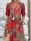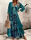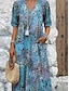 Damskie Sukienka etniczna Luźna sukienka Sukienka maxi Rumiany róż Rękaw 3/4 Kwiatowy wzór Marokański Ponadgabarytowych Drukowanie Wiosna i jesień Między sezonami karbowany kołnierz Codzienny
