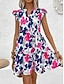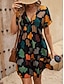 Damskie Sukienka mini Codzienne sukienki Sukienka A line Sukienka w kwiatki Elegancja Moda Nowoczesny Na zewnątrz Urlop Wyjściowe Regularny Kwiaty Krótki rękaw W serek Niebieski Czarny Pomarańczowy