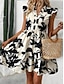 Damskie Sukienka mini Sukienka z nadrukiem Wiosenna sukienka Moda Nowoczesny Na zewnątrz Urlop Codzienny Luźna Kwiaty Panterka Geometryczny Długi rękaw W serek Czarny Fioletowy Fuksja Brązowy Lato