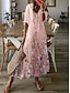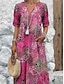 Damskie Sukienka midi Codzienne sukienki Sukienka w kwiatki Sukienka z nadrukiem Elegancja Moda Nowoczesny Na zewnątrz Urlop Wyjściowe Regularny Luźna Kwiaty Rękaw 1/2 W serek Rumiany róż Lato Wiosna